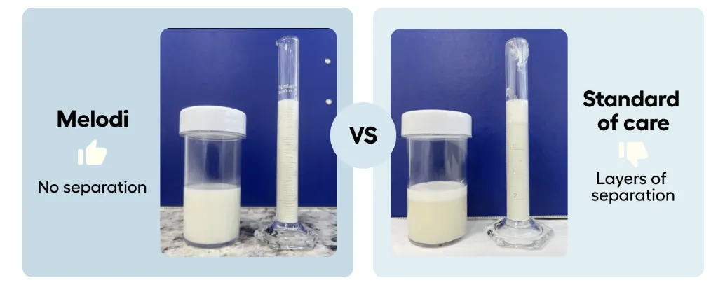 To solve this, we meticulously fine-tuned multiple steps in our production process to ensure the formula stays consistent, uniform, and stable. We call this emulsion stability, the ability of the formula to maintain its integrity so every sip delivers exactly what your baby needs.